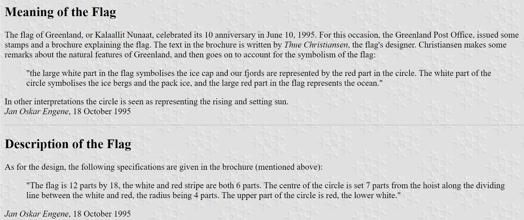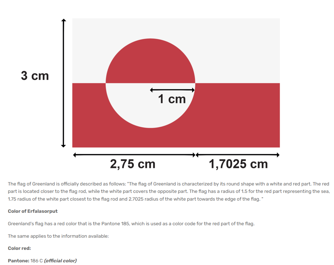 Editor's note: Greenland 1985 law says the flag is determined by (Danish) Royal Resolution, however I cannot locate any such resolution.