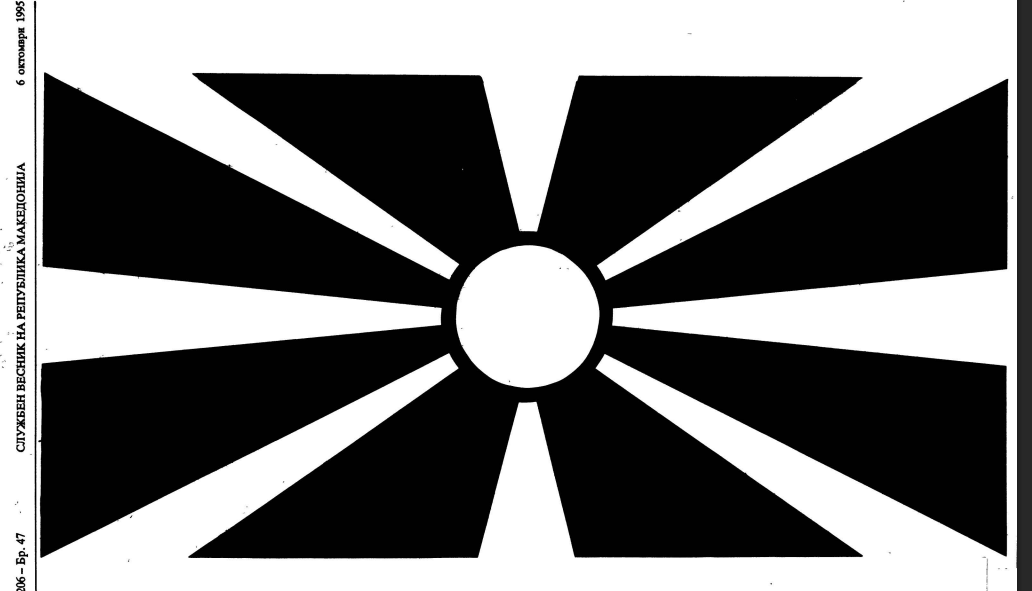 The flag of the Republic of Macedonia is red with a golden-yellow sun. The sun has eight rays that extend from the solar disc, widening toward the edges of the flag. The rays are interspersed diagonally, horizontally, and vertically.